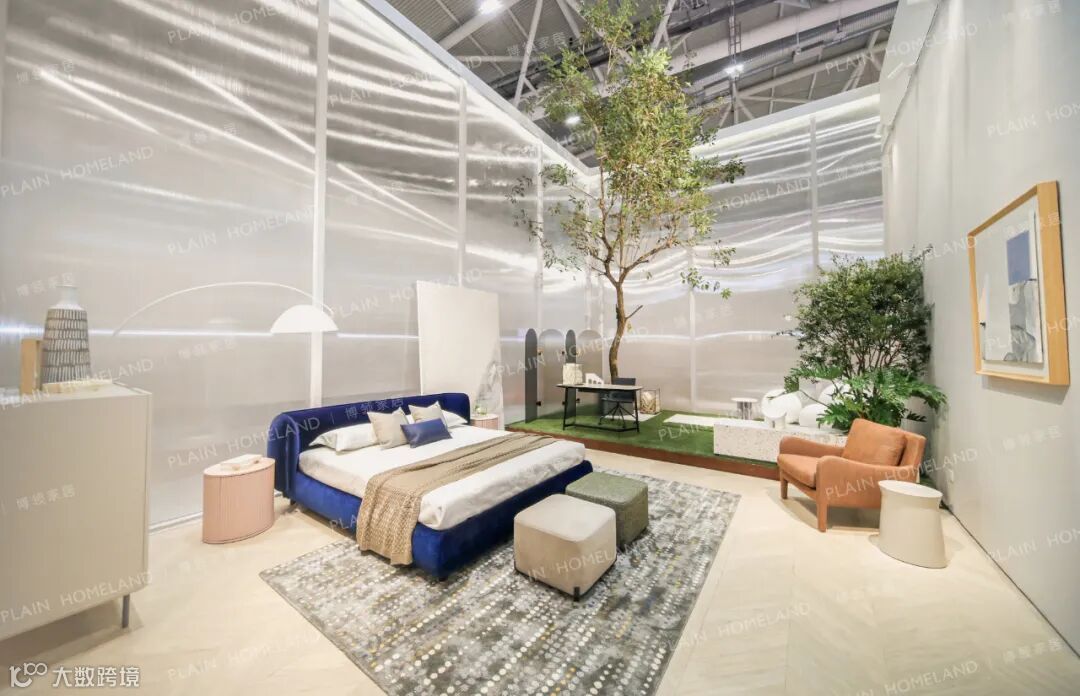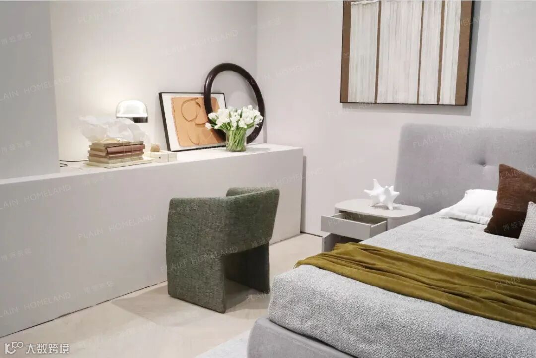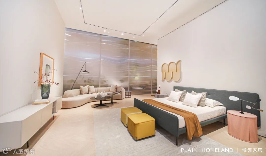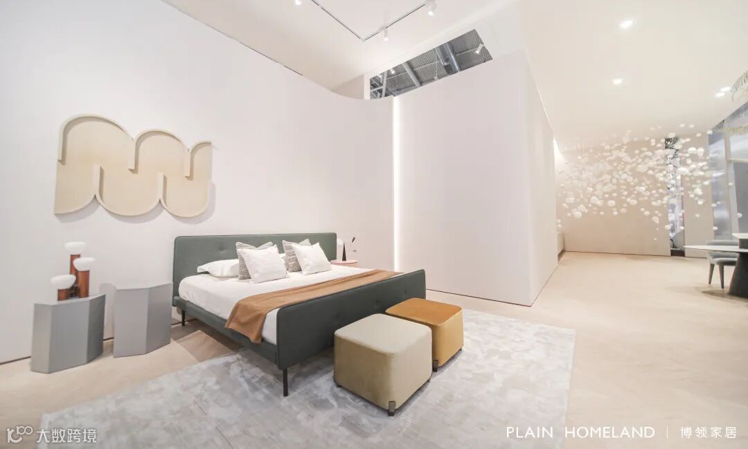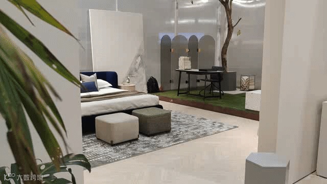 作为步入OXME品牌馆的首个家居空间,秉承着OXME傲觅坚持设计创新、坚持自我风格的品牌精神,充满设计感的家具新品,勾勒了现代摩登风格的大气俊朗,沙发与床品的搭配,是一种补充与延伸,搭配上一张白色电视柜,构成一个家居空间,代表对于个性美好的期许与憧憬,干净利落的白色调与搭配成为展会的亮点之一。
