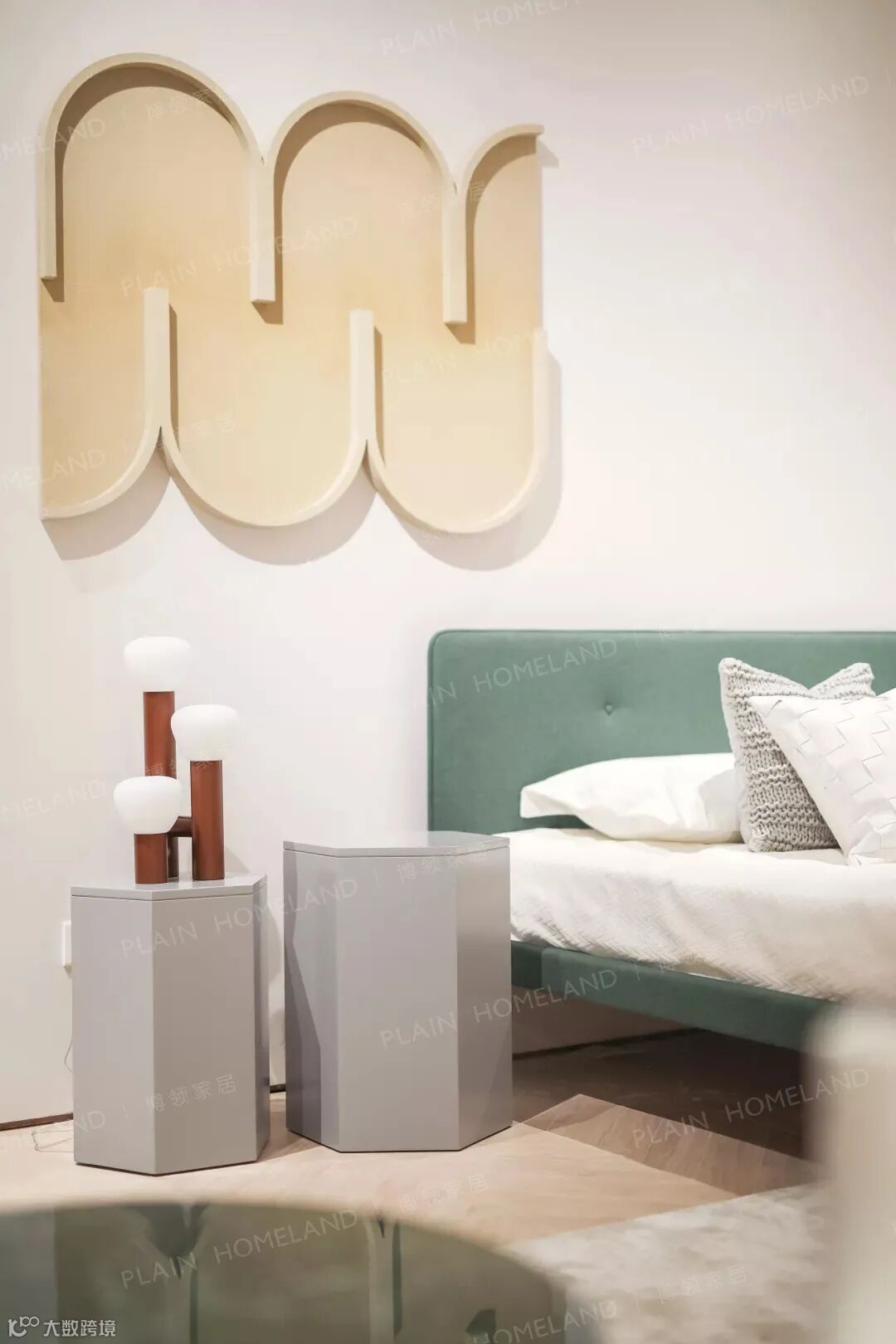 色彩与软装相互映衬,以建筑的概念形式打造出连贯的横向生活轴线,将空间的机能缜密地融合于空间轴线上,化于空间情感之中,利用软装陈设与色彩搭配探讨现代生活场景下的人人关系、人物关系以及物物关系。