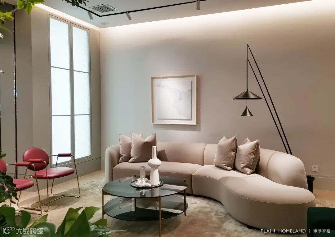 宁波旗舰店“简奢”风格展厅,整体轻奢时尚,以更生活化的设计理念诠释现代家居美学,努力为消费者构建“有温度的家”。门店整体不仅在空间设计及家具应用的每个细节上细致考究,更注重软装饰品的选择和搭配,增强生活气息。