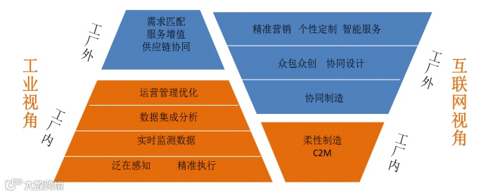 从业务需求看,工业互联网可以从工业和互联网两个角度来探讨。