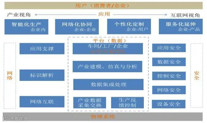 从业务架构角度看,工业互联网由网络、平台和安全三大要素构成。