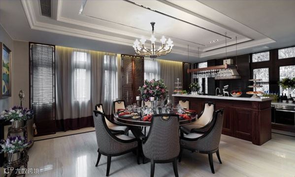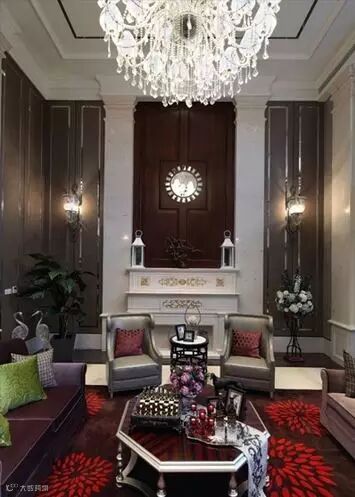 本别墅案例装饰手法精雕细琢,设计构思娴熟精巧,英伦风情浓郁,堪称当代英式风格的典范之作。设计师在保证不同空间实用功能的基础上,以巨型水晶吊灯、欧式古典家具、壁炉、罗马柱等营造出雍容华贵的英式格调。同时,在延续整体新古典风格的基调上,融入古典中式元素,使该高端别墅设计项目优雅稳健,极富韵味。