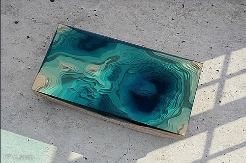 这个桌子真的是代表了设计师想象的巅峰。斜切面的海洋是个什么样子,相信大家在学习地理或者观看有关科学类的纪录片的时候都看到过,现在一名热爱海洋的家具设计师便将这一幕搬到了桌子上,让我们一起来看看这个 the abyss table海底地形图桌,绝对超乎我们的想象。