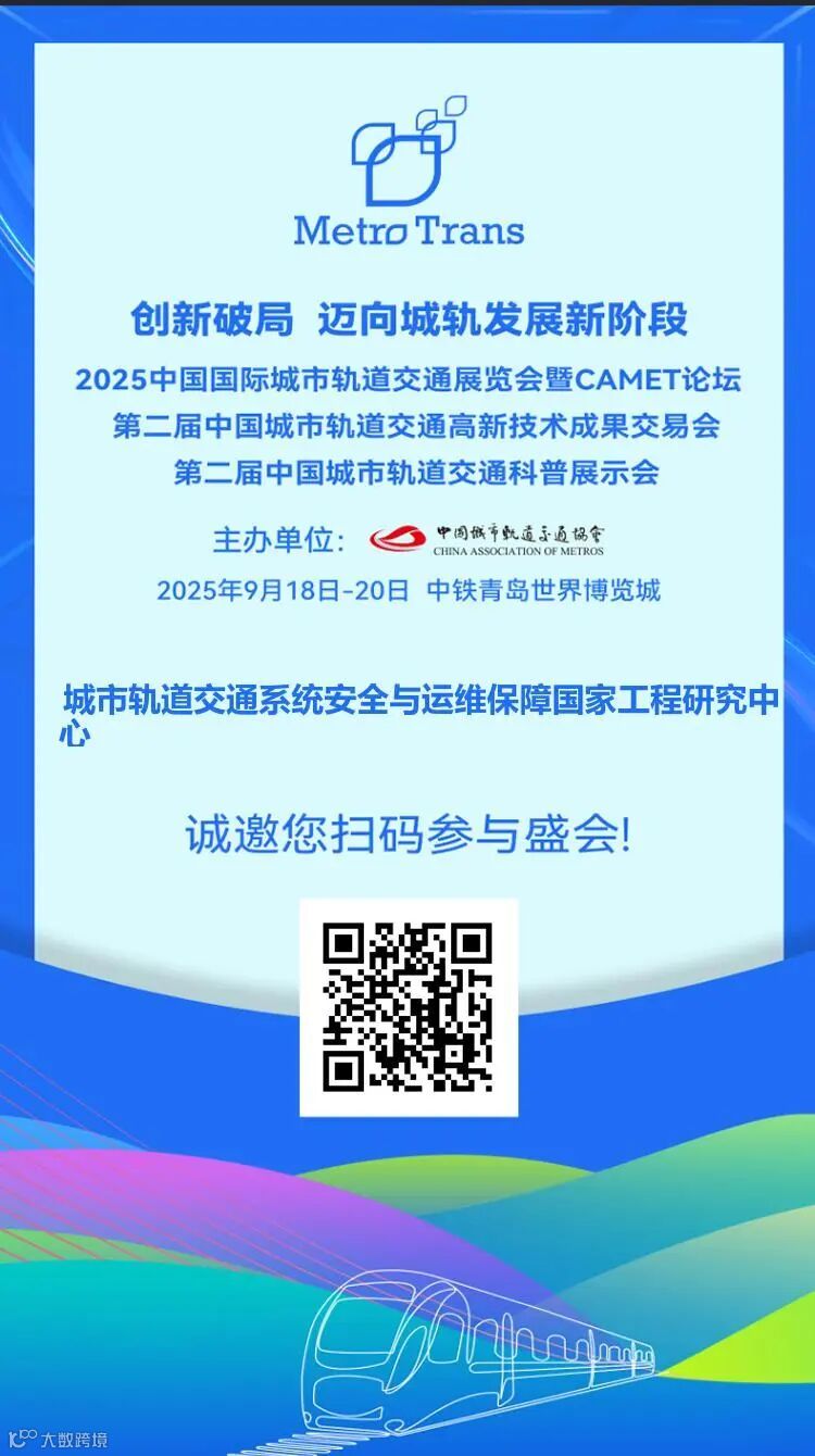 9月18日至20日,由中国城市轨道交通协会主办的中国国际城市轨道交通展览会暨CAMET论坛(MetroTrans 2025)将在中铁青岛世界博览城举行。作为城轨交通领域的年度盛会,展会同期还将举办第二届中国城市轨道交通高新技术成果交易会(以下简称第二届城轨高交会)、第二届中国城市轨道交通科普展示会。
