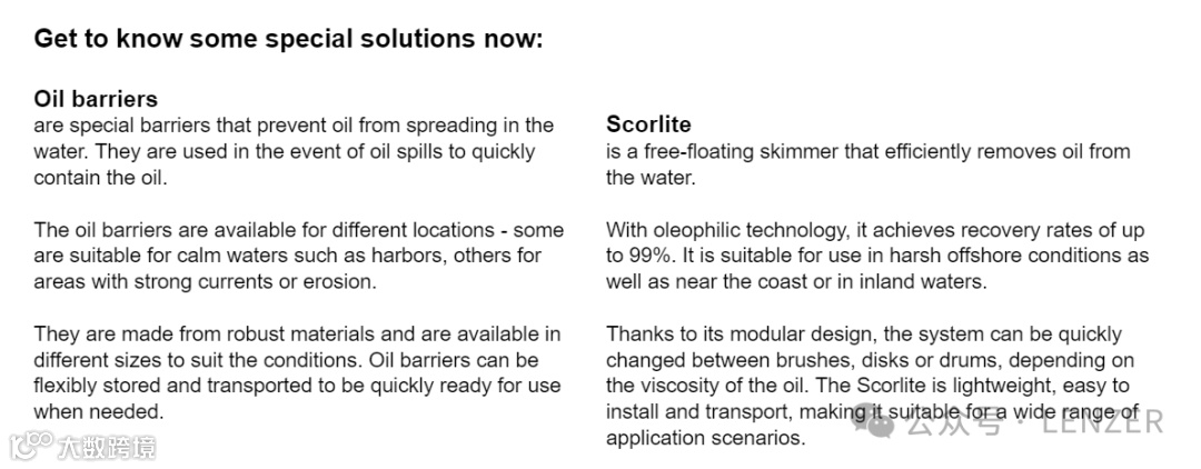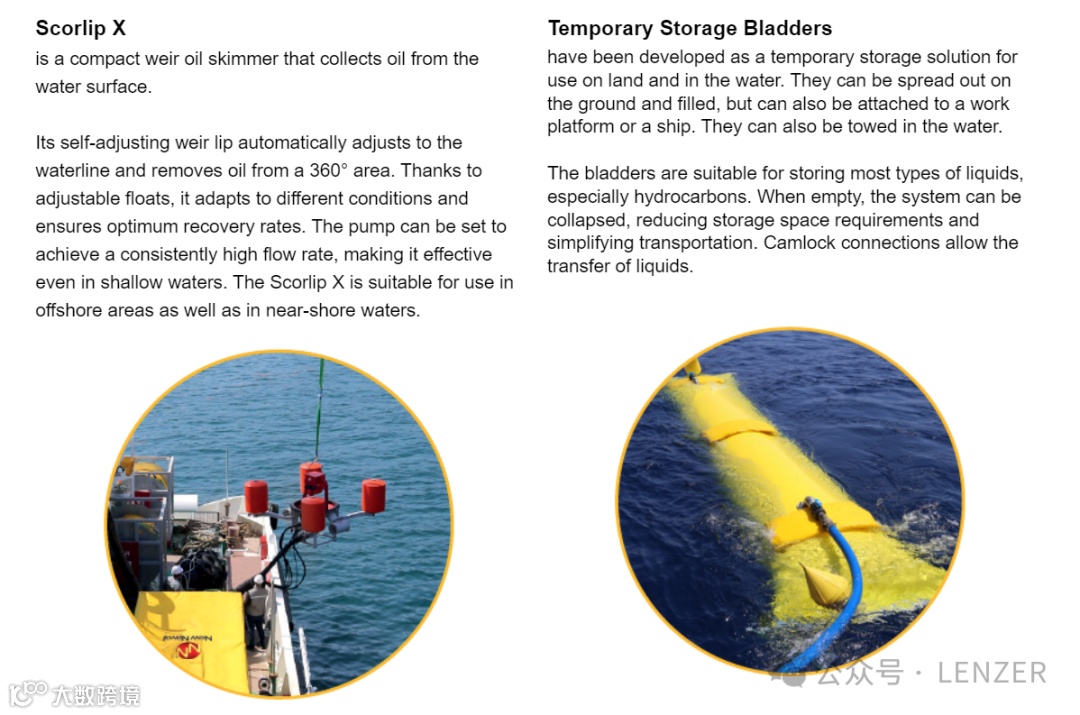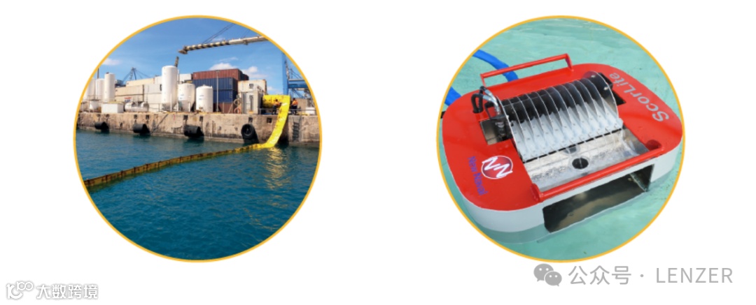 左图-Scorlip X是一款水面油污收集器,专门用于从水面上收集油污。其自调节的溢流部能够自动适应水面线,并从360°范围内收集油污。