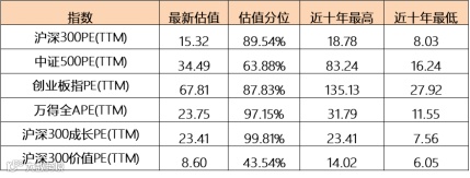 好买基金研究中心统计发现,以沪深300和创业板指为例的,其估值分位已处于历史高位。不过纵观其估值绝对数值,以沪深300当前PE值绝对数值在15倍左右,并不算高。