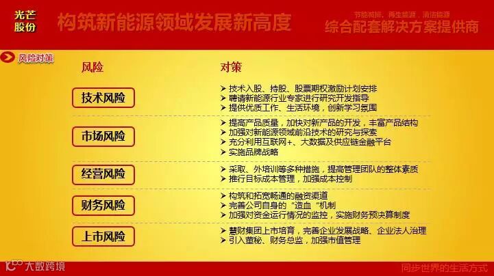本次大会,慧财集团董事长、金融学博士、国际注册管理会计师、高级人力资源师、审计师对四川光芒新能源项目做了详细的介绍,不仅为投资者展示了四川光芒新能源股份有限公司的发展历程、现状及未来发展前景,同时也对该项目所存在的风险进行了缜密的分析并提出了相应的解决对策,站在投资者的角度为投资者排疑解难,选择优质项目。