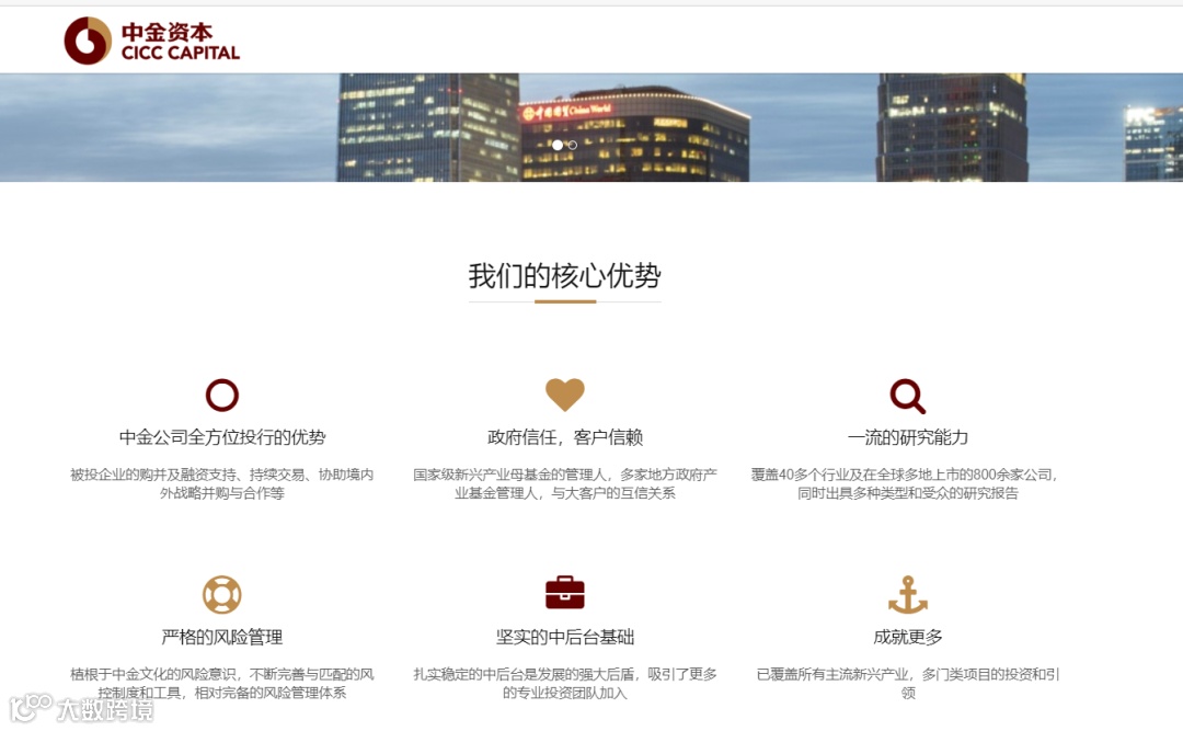 在2018年,中金资本在区域性基金、产业合作基金、跨境合作基金等领域已有大量产品落地,包括与大型金融机构合作设立大类股权资产配置母基金,探索一二级市场基金联动等,投资行业广泛覆盖新一代信息技术、生物医疗、文化消费、高端装备制造等。到2019年,中金旗下整体私募股权投资管理规模已突破3000亿元。