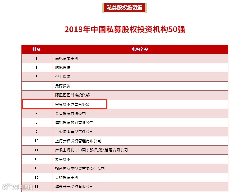 在清科2019中国私募股权投资机构50强中,中金资本位列第六名,仅次于高瓴资本、腾讯投资、阿里巴巴战投等机构,与中信证券旗下的金石投资比肩,在券商私募子公司中排名最为靠前。