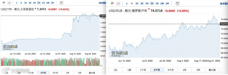 值得注意的是,尽管美元近来持续贬值,但并非对所有国家都如此。一些新兴国家遭受疫情重创,美元相对于这些国家的货币反而在升值。例如,就在美元指数跌幅明显的近三个月来,美元兑土耳其里拉、美元兑俄罗斯卢布、美元兑巴西雷亚尔都明显升值,但同期美元兑人民币则贬值显著。中长期看,汇率是一国基本面的反映,相比于其他新兴经济体,市场用汇率给中国经济基本面投下了“信任票”。