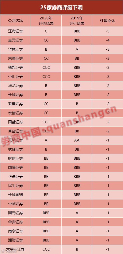 今年有25家券商分类评价结果获下调,相较去年少了3家。