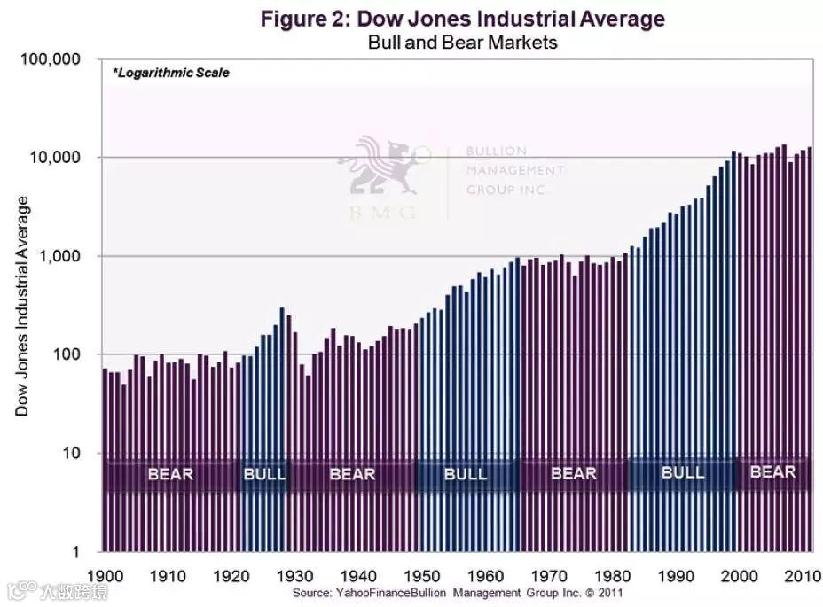 在过去的25年里,美国股市经历了一场历史上为时最长之一的牛市,道琼斯指数从1982年的985点攀升至2000年的11732点,涨幅高达1100%。另一方面,我们也进入了一个新的周期,比如黄金迈入了一个长期上涨趋势。精明的投资者也需采取一种新的思维模式调整自己的投资组合。