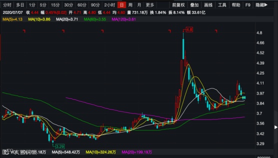 (交通银行A股在今年7月7日达到最高点5.45元/股,此后呈现下行趋势。)