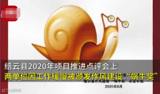 但与普通意义上的颁奖不同,“获奖”的相关单位负责人走上台领奖时,往往都“抬不起头”,因为他们拿到的“奖励”,是因工作效率太低而获得的“蜗牛奖”……
