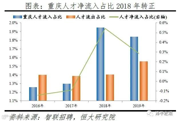 3)重庆:2016-2019年人才净流入占比分别为-0.1%、-0.1%、0.5%、0.3%,2018年由负转正主因对信息技术产业具有较强的人才吸引力。重庆常住人口增量维持在高位,2011-2019年增量平均为27万。2016-2019年重庆人才流入占比总体呈上升趋势,分别为1.3%、1.3%、2.0%、1.8%,人才流出占比在2016-2018年均为1.4%、2019年上升至1.6%,导致人才净流入占比分别为-0.1%、-0.1%、0.5%、0.3%,逐年上升且2018年由负转正。
