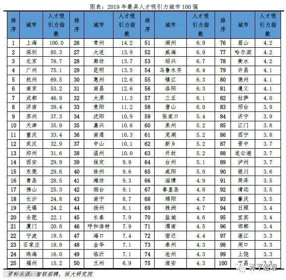 2.1中国最具人才吸引力城市100强:沪深京居前三