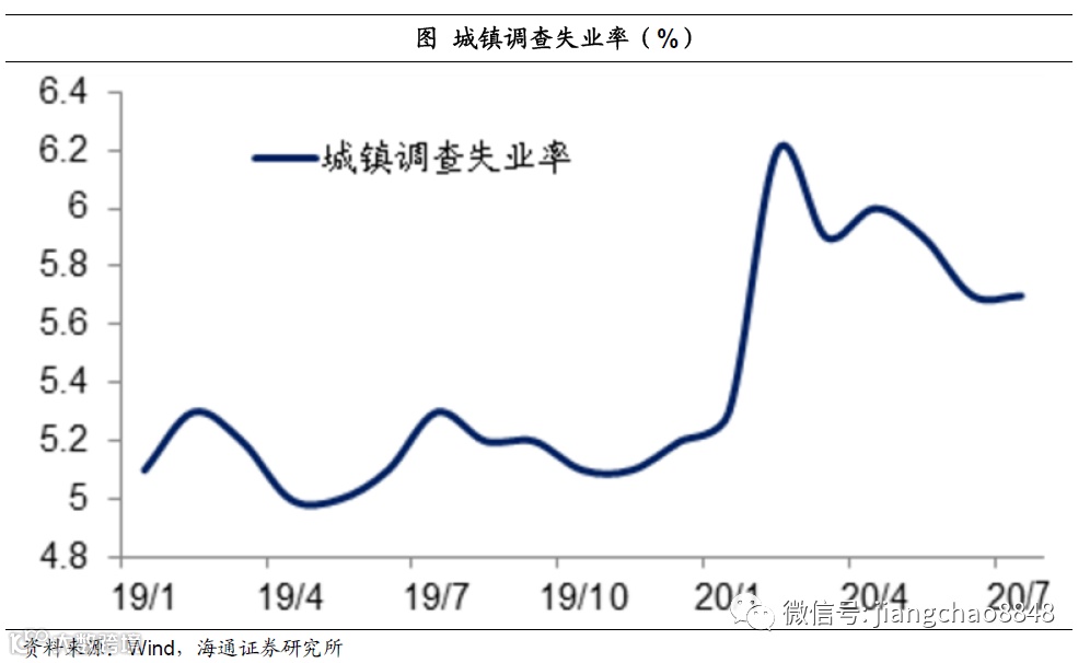 从统计局公布的城镇调查失业率来看,峰值出现在今年2月份的6.2%,之后开始逐渐下降,这也证明了中国就业在持续改善,服务业经济在持续好转。