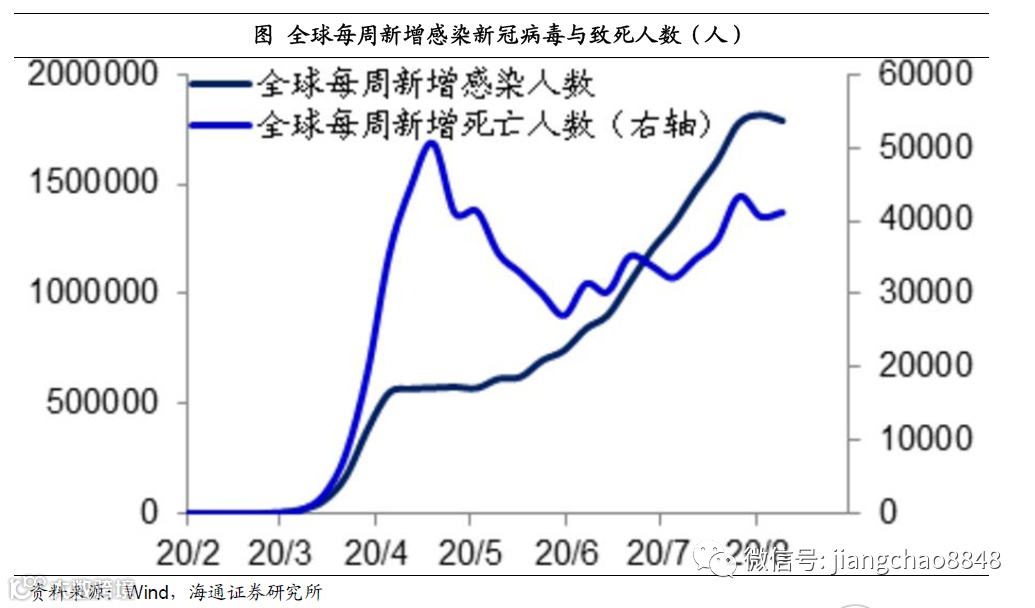 新冠肺炎的爆发是影响今年全球经济最大的黑天鹅事件,而且到目前为止,其扩散依然没有明显减弱的迹象。截止8月第一周,全球新增感染人数为179万,维持在2月以来的周度峰值附近,似乎在有效疫苗出现之前,其影响就会持续扩大。