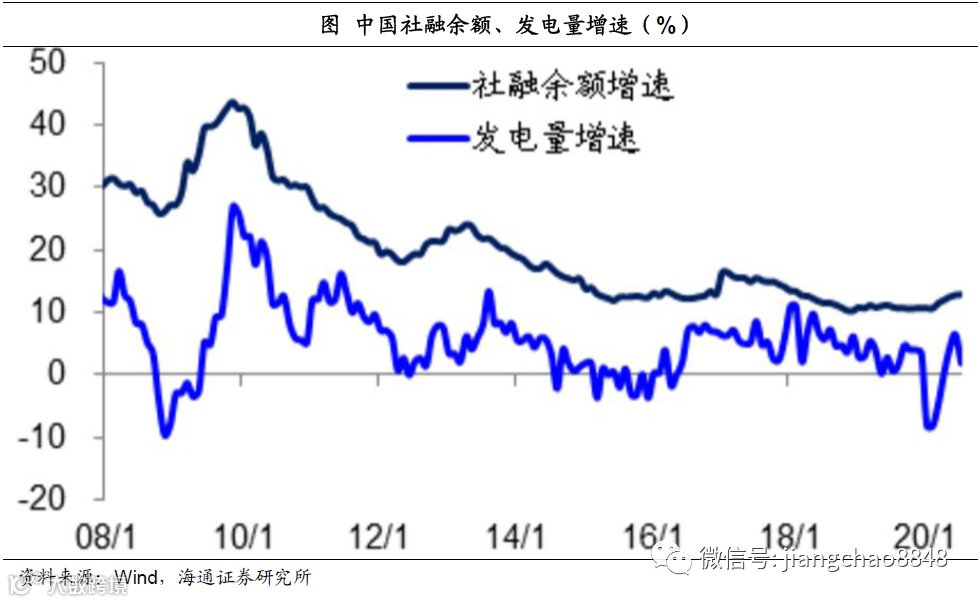 首先,历史数据表明,社会融资总量余额增速是决定中国经济走势的重要领先指标,在08年之后,中国经济曾经出现过3轮经济复苏,在每一轮复苏之前的一到两个季度,都提前出现过社融增速的回升。这一次也不例外,在3月份社融增速开始回升,同时发电量增速也从底部开始反弹。