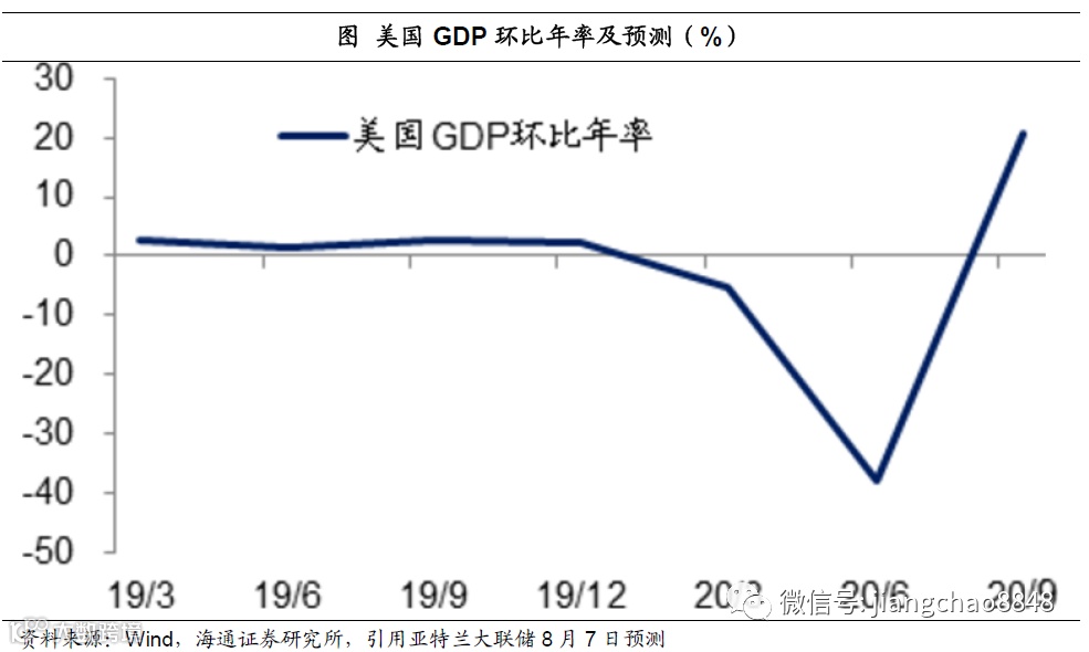 消费是美国经济的主体,7月份以来美国的就业和消费持续改善,预示着3季度美国经济有望明显复苏。美国亚特兰大联储8月7日的预测显示,3季度美国GDP环比年率有望达到20.5%,这意味着美国3季度有望出现强劲复苏。