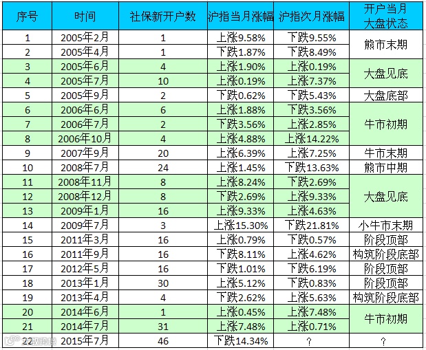 值得注意的是,当社保基金连续两月开户时,大盘全部处于底部或牛市初期。