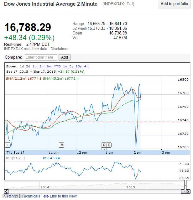 截止至发稿时,道琼斯指数快速下跌后反弹:
