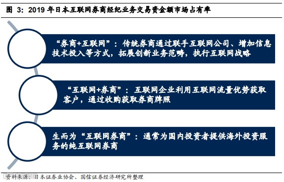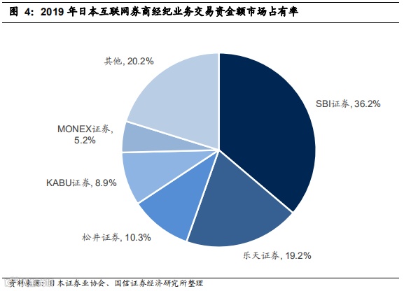 经过充分竞争,未来香港零售证券经纪市场有望形成集中度高且特色鲜明的行业格局。参照日本,经过充分竞争,日本互联网券商形成了较高集中度。目前,前5名互联网券商经纪业务交易资金额占据了80%的市场份额。这五家头部互联网券商各有特点:有从软银集团的金融投资转向网络金融服务,并最终打造为网络金融生态系统的SBI集团;有从电商起家,后转型互联网金融的乐天集团;有面向相对于佣金更重视服务和稳定系统客户的网络经纪商松井;也有突显产品创新、注重服务体验的纯粹互联网券商Monex。