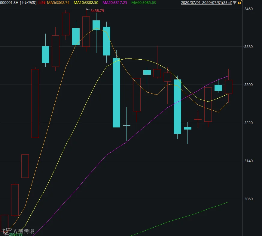就市场整体行情来看,自7月1日的2992点启动以来,沪指连续跳空高开,期间一度突破3450点高位。不过,7月中旬开始出现回调,下探至3200点。7月下半月,沪指在3200点到3400点间反复震荡。