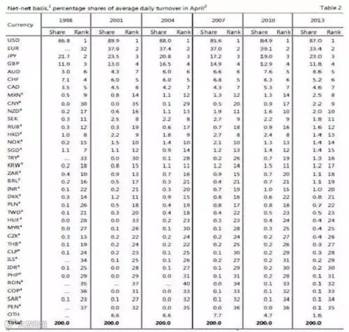 IMF对全球外汇市场交易量的评估,主要参考BIS的统计。BIS最新披露的数据显示人民币2013年占全球外汇成交量的1.1%,虽然规模依旧甚小但排名已由2010年的第17位一跃成为第九大最活跃货币。2013年人民币现货和衍生品市场日均交易额达1200亿美元,其中离岸衍生品市场日均交易额超过500亿美元,并且这些交易额还在进一步增长。虽然BIS未提供2014 年数据,但随着近年来人民币国际化步伐的不断加快,可以预期,2015年人民币在外汇市场有不俗表现。