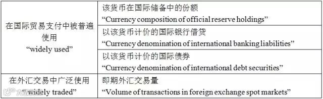 IMF在其报告中就SDR篮子货币“可自由使用”的标准也有所明示,给出了以下几项指标: