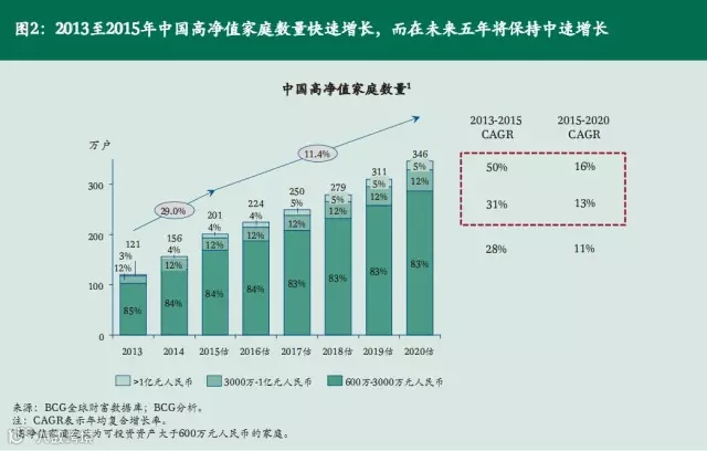 2015年中国私人财富将达到人民币110万亿元,高净值家庭数量将达到201万户,拥有约41%私人财富。