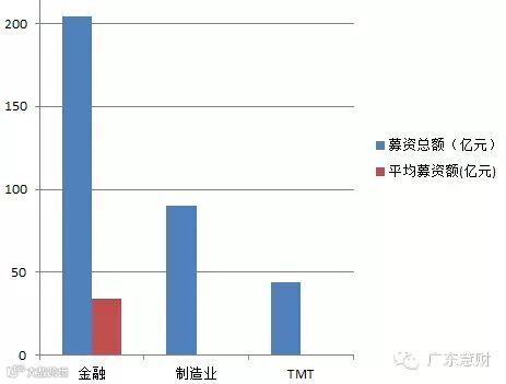 募资按行业分,金融业虽然只有6单,却占到募资总额的半壁江山,募资204亿元,平均每家募资34亿元。整个表单募资总额403.6亿元。募资家数最多的是制造业,共计295家,募资90亿元,平均每家募资3070万元。其次是信息传输、软件和信息技术服务业,共募集44亿元,分摊到128家,平均每家3507万元。