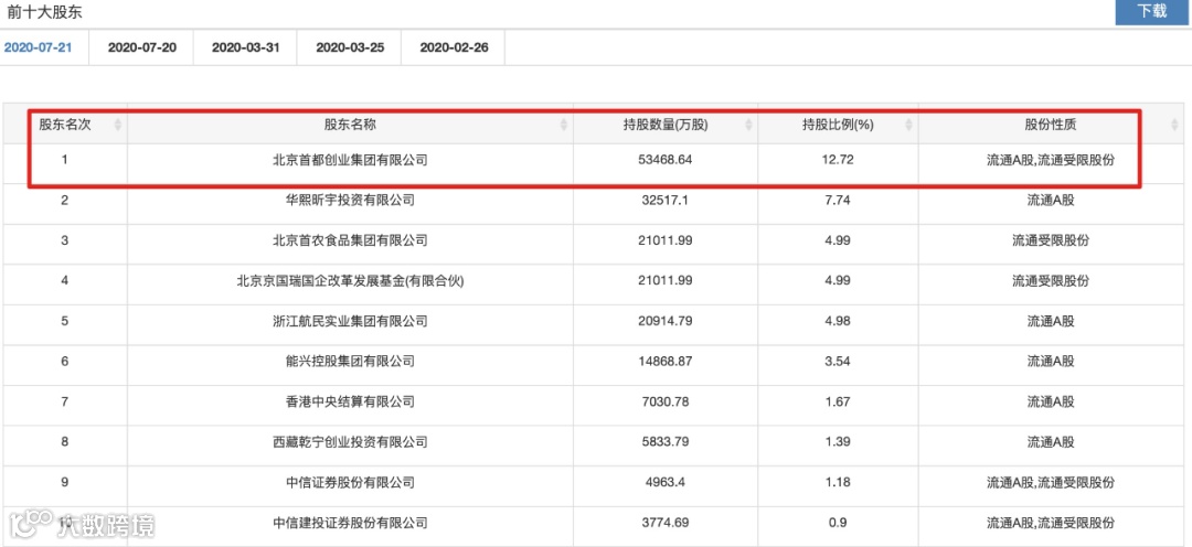 根据天眼查可看到,在这次股权变更中,北京达美投资有限公司与河北国信投资控股集团股份有限公司退出,这名新股东成为首创证券的第二大股东。至此,北京国资实际上通过不同的平台扩大了对首创证券的持股比例,目前已达到91.54%。