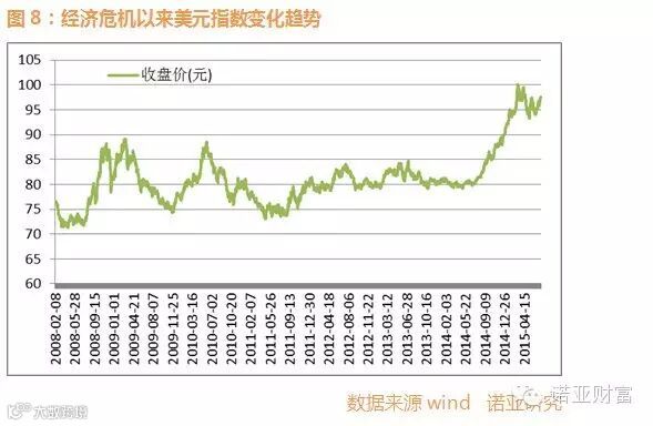 回顾历史,美元从上世纪70年代布雷顿森林体系瓦解之后,已经经历了两轮大幅升值,分别是在1978~1985年,以及1995~2002年,其间升值幅度均达到60%左右。就当时全球经济来看,这期间的强势美元导致全球资本流出新兴市场回流美国,成为新兴市场金融危机的导火索。