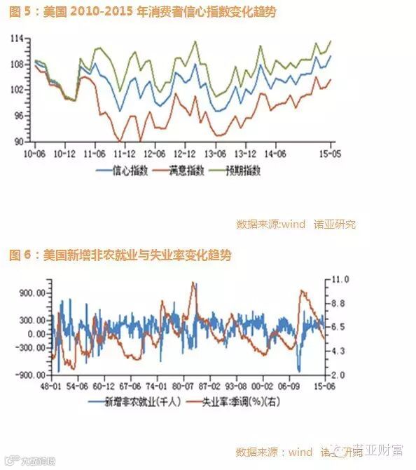 2015年以来,美国消费者信心指数大幅增加且明显高于预期,而失业率却在缓慢下滑。