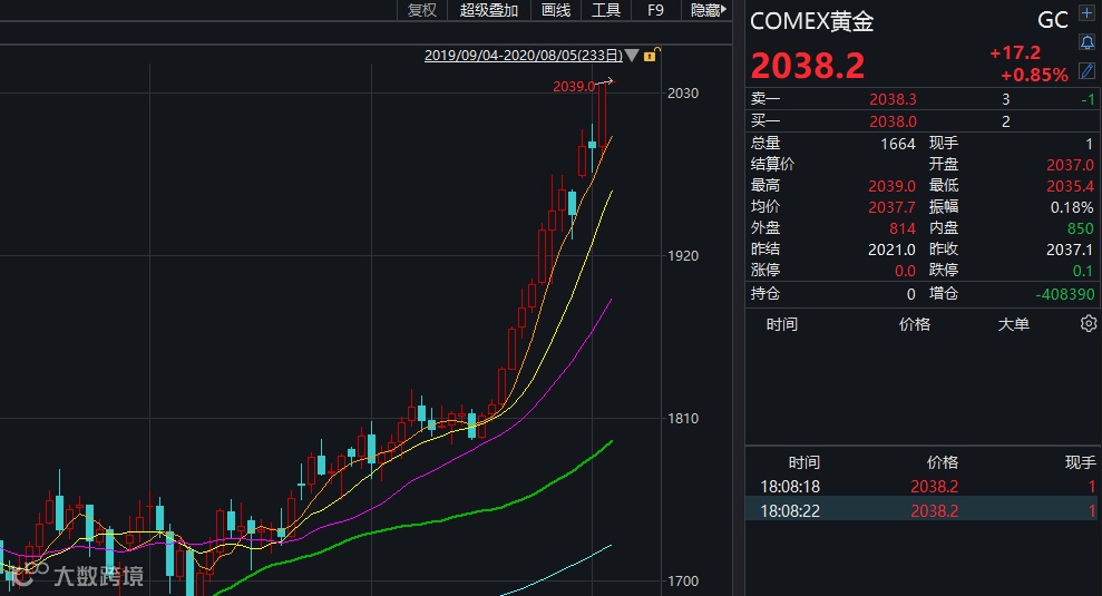今日开盘,黄金依然非常强势,其中,COMEX黄金今日开盘后一度涨逾1%,突破2040美元/盎司。