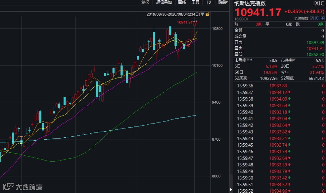而美股方面,三大股指继续集体收红,其中纳指再创新高。黄金更是突破了2000美元,今天,黄金还在上涨。