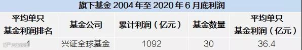 据天相投顾最新披露的数据,截至6月底,兴证全球基金旗下远低于同行的30只基金,2020年上半年创造了215亿元利润,在141家基金公司中位居第9。
