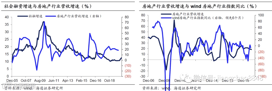 房地产行业主要受货币宽松及调控政策影响,是典型的周期性行业。信贷扩张周期中,房地产作为货币蓄水池同时具有抗通胀能力,因而在货币超发期受到追捧,房市火热自然也会带动地产行业上市公司盈利能力增强。但房地产行业股价上升往往领先业绩6个月,这是因为在房地产调控政策放松时,投资者预期未来地产行业盈利将会增加,当期就会买入地产股,导致股价提前上升。