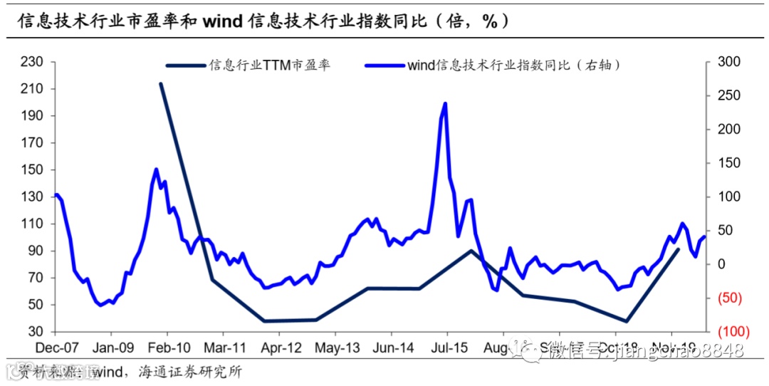 医疗保健、信息技术行业等成长板块股价的主要驱动因素是估值,而信贷扩张期利率上行有损公司估值。信贷扩张周期中,随着实体对资金需求越来越强,利率逐渐上升,而成长板块股价与其业绩关系不大,与估值高度相关,利率的上升会降低其估值,进而阻碍股价的上涨。反之,经济衰退期,央行往往下调基准利率以刺激经济,这时成长股估值就会大幅上升,股价涨幅领先其他行业。