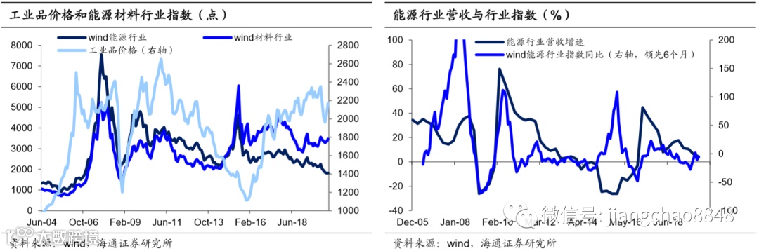 而周期性行业主要受益于经济复苏带来的工业品涨价。一方面,过去我国经济长期靠投资驱动,经济复苏期会出现工业品需求增加,拉动工业品价格上升。能源材料等周期性行业盈利能力提升,股价上行有业绩基础。从历史数据来看,除了14-15年并购牛市中股价上涨脱离基本面,工业品价格、能源及材料行业盈利能力和股价走势基本一致。