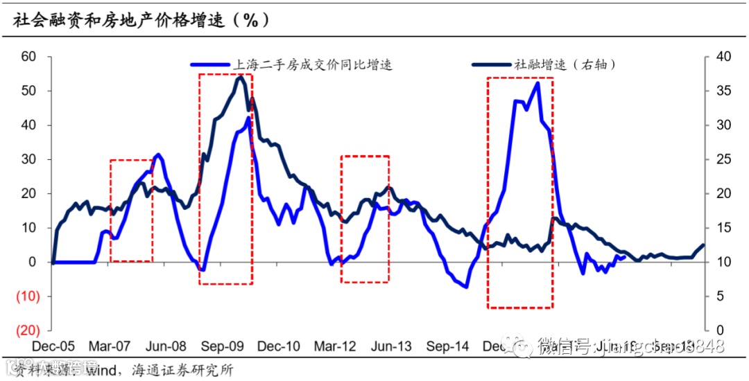 14年经济增速再度出现明显下滑,当年9月房贷新政出台,加大了对个人住房贷款需求的支持,放松房贷政策和对二套房、三套房的认定,各地随后开始陆续放松限购政策,全国楼市重燃,房价开始反弹。15年3月央行等多部委联合发文将二套房最低首付款比例从60%下调至40%,进一步放松楼市调控。同时,财政部发文对个人购买持有2年以上的普通住房销售免征营业税。受此刺激,16年全国房价暴涨,北上广深等一线城市房价上涨超过40%,上海二手房交易价格涨幅达57%。随后三四线城市楼市在棚改货币化的刺激下也出现大涨。