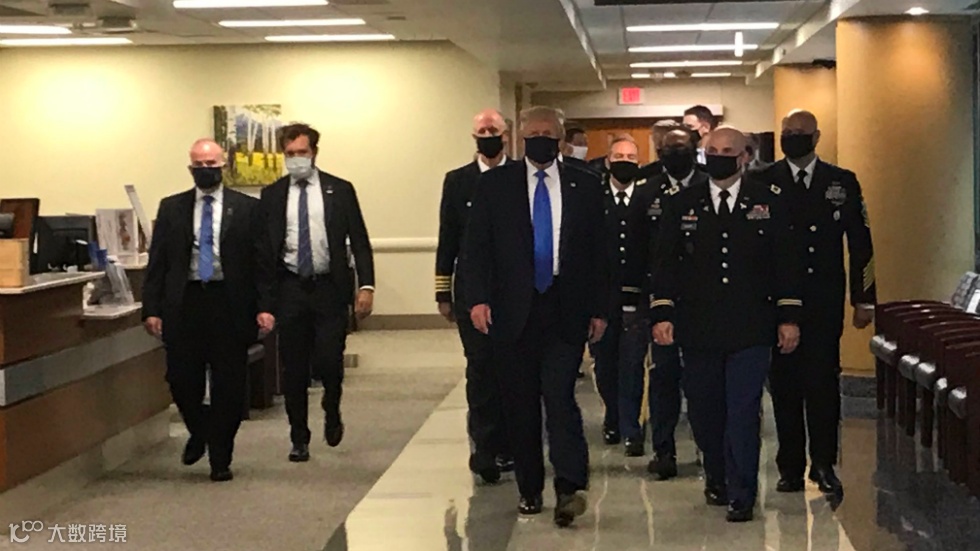 美国国会山报截图:特朗普访问沃尔特·里德军事医院时戴上口罩