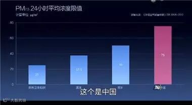 PM2.5当中有15种致癌物,其中世界上最强的致癌物,苯并芘它是国家标准值的多少倍呢?14倍。