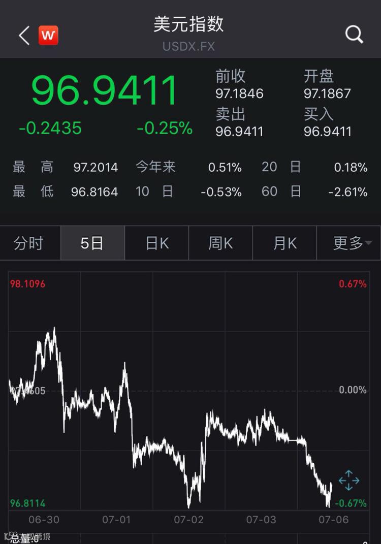 曹源源表示,鉴于近期美国疫情二次爆发并不断触及高点,制约美国正常生产秩序的有序恢复,市场情绪难以完全走出谨慎模式,上周美元指数跌幅较为有限,不足0.2%。目前市场情绪出现一定分化并难以彻底摆脱避险逻辑,美元指数仍有高位运行的动力。整体而言,在全球疫情未见实质性好转前,美元短期走势将偏向震荡胶着,在96-97之间徘徊。