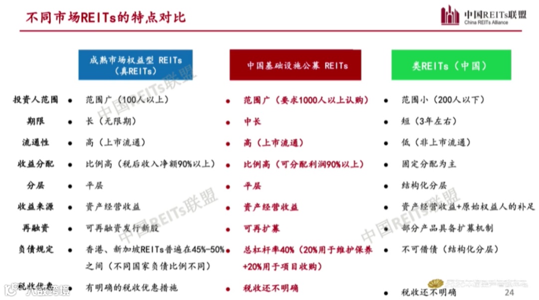 中国REITs联盟秘书长王刚表示,与成熟市场权益型REITs相比,中国基础设施公募REITs的杠杆率较低,税收政策还不明确,有待进一步的完善。