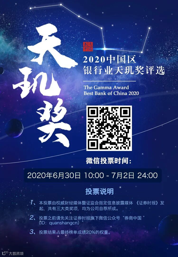 6月30日,由证券时报主办的“2020(第二届)中国区银行业天玑奖”微信投票正式启动,欢迎各位读者为本届评选投出您神圣的一票。