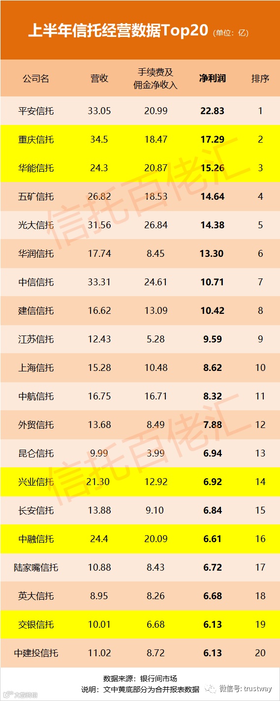 信托公司2020上半年收成逐步浮出水面。