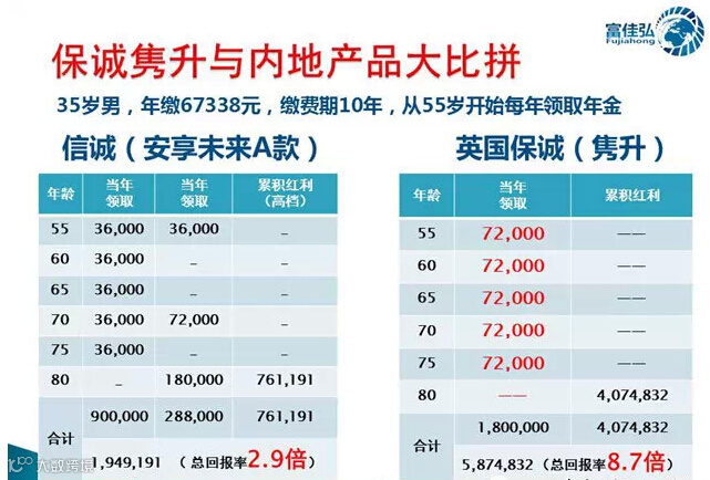 这是有百年历史的世界老牌保险公司——英国保诚推出的王牌热销产品【隽升】计划,它是香港保险界中的宠儿,深受内地客户喜爱,其较高的长期投资回报率(长达数十年平均每年高达6.5%-8%的复利收益),让其他同类产品望尘莫及。而且,【隽升】计划理财灵活,收益稳健,非常适合希望有长期稳定高收益的客户。