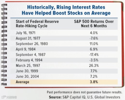 美联储究竟将在何时加息,市场众说纷纭。不过,股市投资者并不需要过分担忧美联储加息的影响。从1971年起,美联储在加息周期开始后,标普500指数在首次加息后6个月内上涨3.8%。
